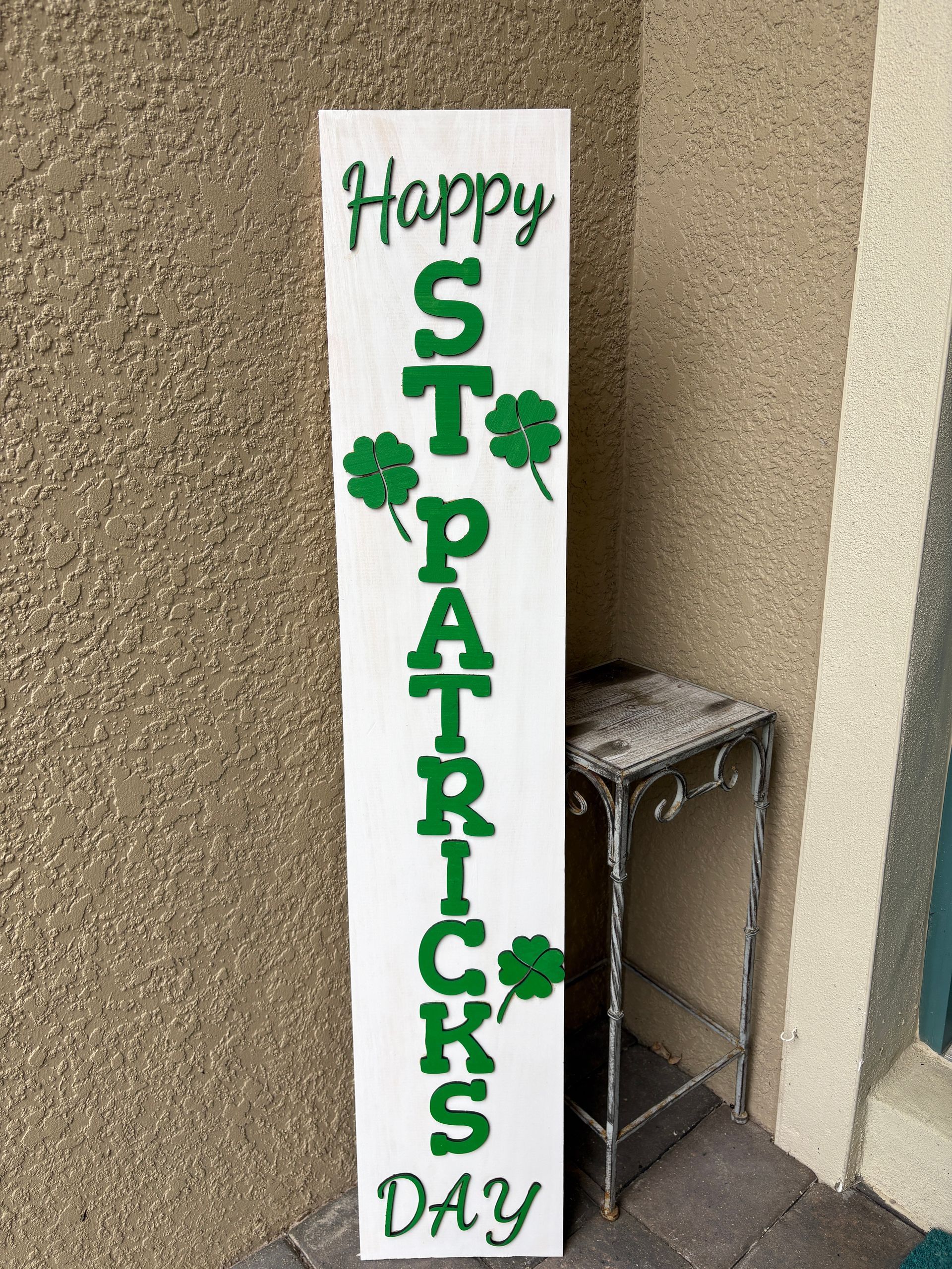 Add a touch of Irish charm to your front porch with this festive “Happy St. Patrick’s Day” sign — the perfect way to welcome guests with a bit of luck and a lot of style! Measuring 10 inches wide by 48 inches tall, this vertical sign makes a bold seasonal statement that’s perfect for celebrating the spirit of the holiday.