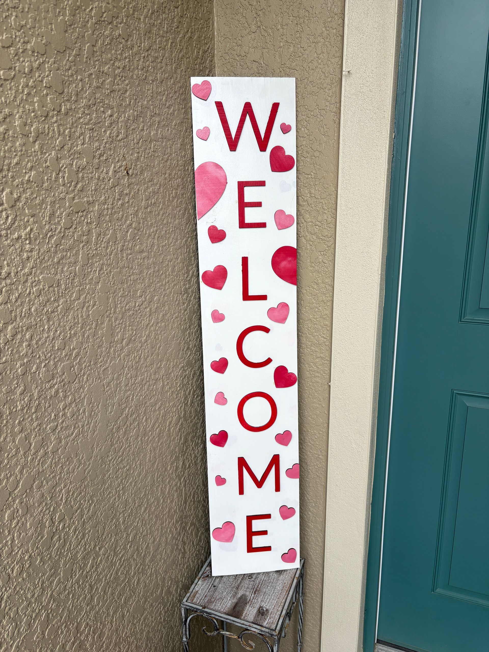 Valentine’s Day “Welcome” Porch Sign – 10" x 48" – Heart Accents
